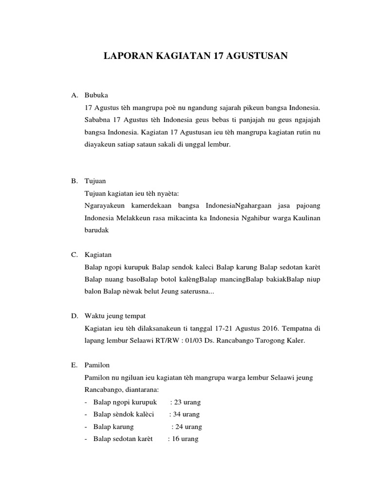 Maybe you would like to learn more about one of these? Contoh laporan kegiatan bahasa sunda tentang kerja bakti. We did not find results for: Check spelling or type a new query.